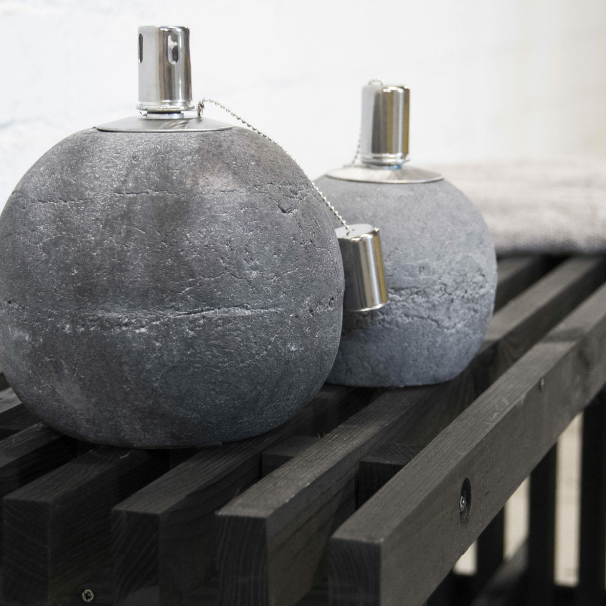 Deze bolvormige olielamp is perfect voor lange zomeravonden in de tuin. De olielamp is voorzien van een roestvast stalen oliecontainer, een glasvezellont en een kap om de vlam te doven.