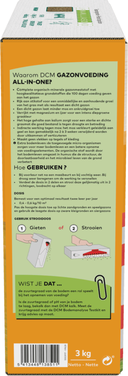 Productinformatie "DCM Gazonvoeding All-in-One 60 m² (3 kg)"