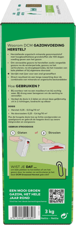 Productinformatie "DCM Gazonvoeding Herstel 80 m² (3 kg)"