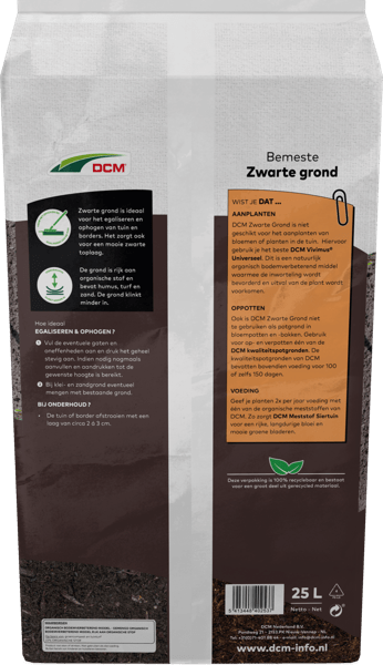 Een vruchtbare grond met de juiste verhouding van turf, zand en humus en rijk aan organische stof voor het egaliseren en ophogen van de tuin.
