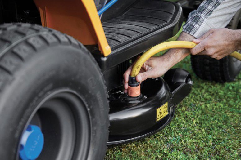 machine wordt geleverd incl. mulch kit, trekhaak en standaard lader 5A. excl. accu